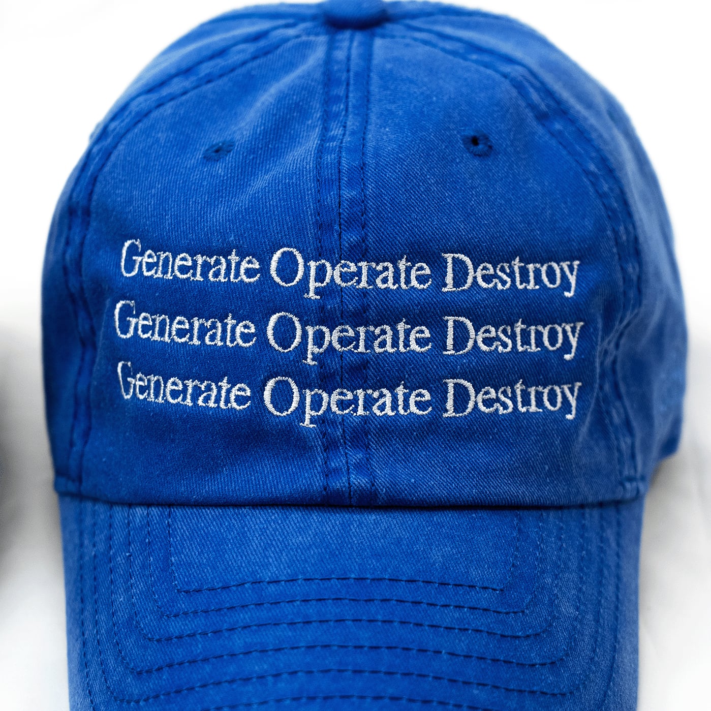 私は特に信仰はないが、本質的で強いこの3つの言葉は前頭葉にこびりつき、物として残したくなり、帽子に刺繍しました。